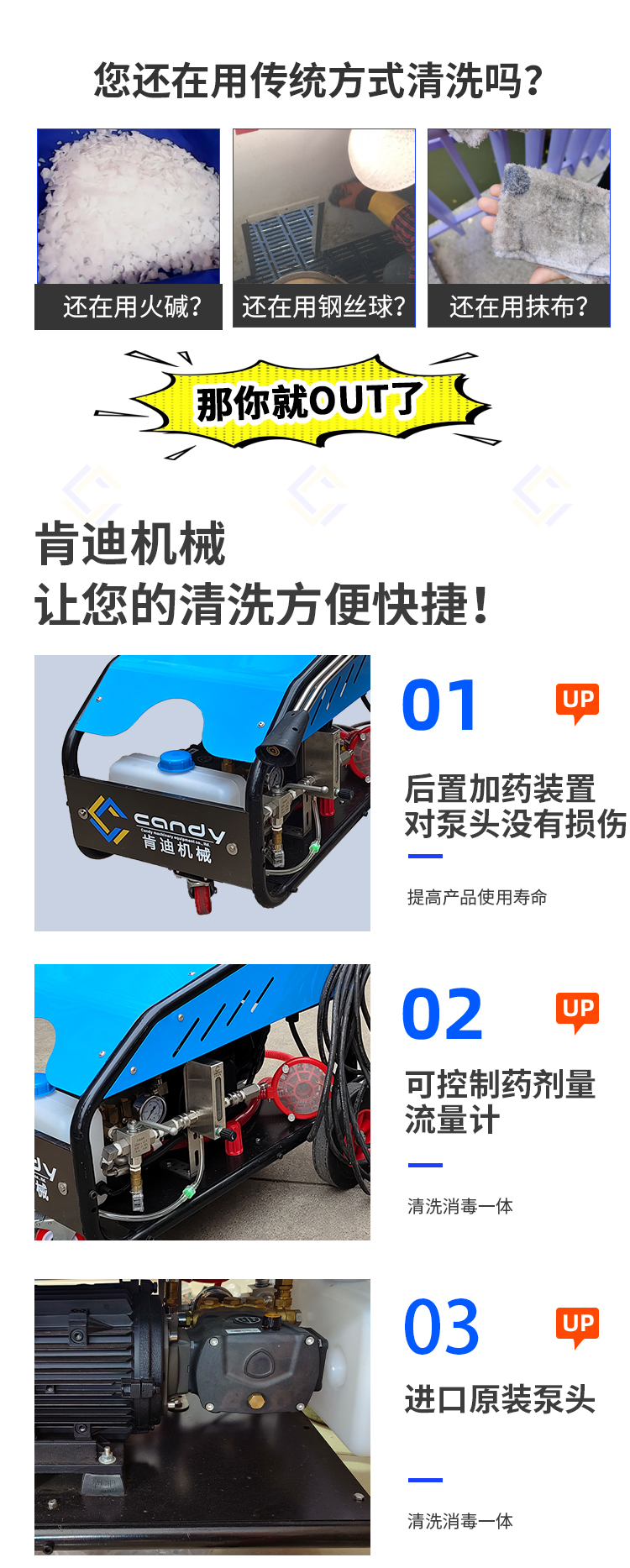 ? 配備意大利AR泵,工作時間長,穩(wěn)定可靠? 設(shè)置前置配藥箱,通過玻璃轉(zhuǎn)子流量計控制藥量噴射;? 配備快插接頭,操作方便簡單高效;? 低壓關(guān)槍停機,關(guān)閉噴槍瞬間停機;? 整機配備電路板控制便于維修安全可靠。